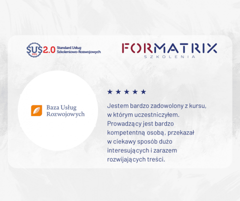 Dziękujemy trenerowi za przeprowadzenie i dostosowanie szkolenia do potrzeb naszych uczestników, jest nam miło czytając komentarze po szkoleniu, a jednym z nich dzielimy się